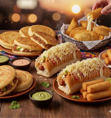 Our menu includes hot dogs, empanadas, and stuffed arepas, all made with quality ingredients.