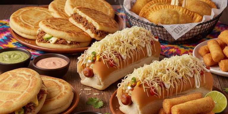 Delicious stuffed arepas with classic and special fillings for every taste.